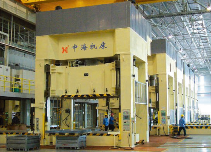 機床有單機和雙機聯(lián)動兩種形式。機身采用多柱式結(jié)構(gòu),立柱表面經(jīng)中頻淬火處理,強度好、硬度高耐磨抗拉傷?;瑝K行程采用進口位移傳感器檢測發(fā)訊,閉環(huán)控制,電液比例泵執(zhí)行,油缸同步效果好,滑塊抗偏載能力較強。